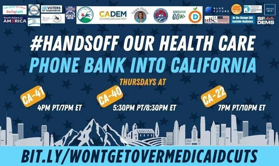 Please join us as we continue to make calls and write their California constituents at SaveOurHealthCare.org and sign up for a shift at bit.ly/WontGetOverMedicaidCuts.