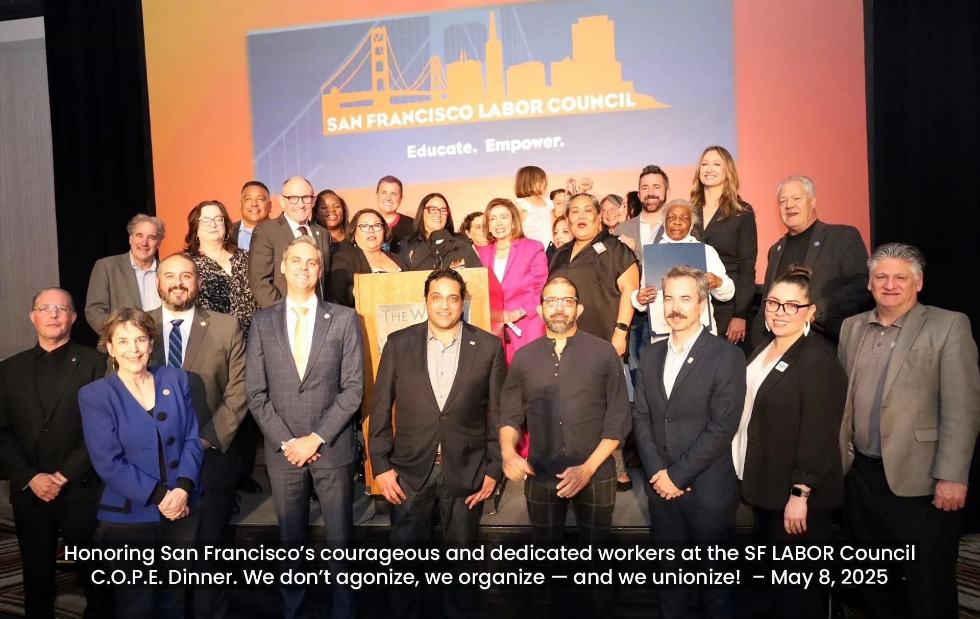 Thursday night, I had the honor of discussing Pope Leo XIV while saluting the work ethic, dedication and courage of San Francisco union workers who day in and day out are the heartbeat of our City. I was pleased to receive my jacket, becoming an honorary delegate of the San Francisco Labor Council. Along with so many in America and across the globe, I am overjoyed at the election of the first American pope in the history of the Catholic Church. I am more excited that His Holiness Pope Leo XIV has already started leading the Church by signaling his commitment to peace, justice and service, in the tradition of his namesake, Pope Leo XIII who was a champion for workers and unions, and of our beloved Pope Francis.